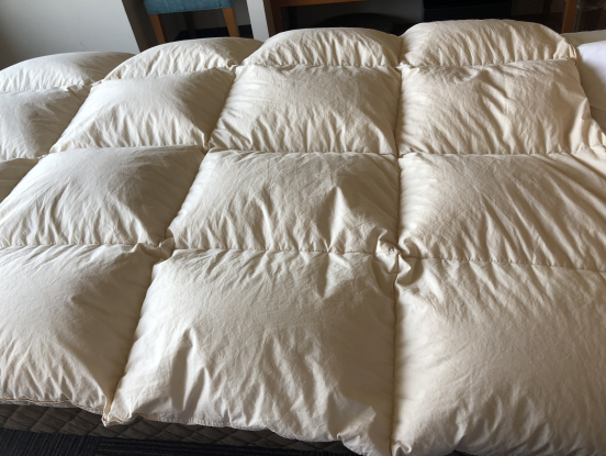 千岁机场的鹅绒被虽然不如万世阁的饱满,但也是非常轻薄,纯棉斜纹的面料有一种丝滑感,超舒服。