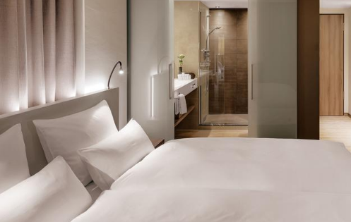 抵达之后,OBB企业负责人Roscheck推荐我们入住Steigenberger Hotel Stadt Lörrach酒店。入住后,方明白Roscheck先生的用意,原来该酒店是德瑞奥等国中众多OBB合作酒店中的一家。酒店使用的OBB ROYAL BED鹅绒被自重轻,无异味,透气性好,面料触感好,完全没有漏绒现象,一夜酣睡至天亮。