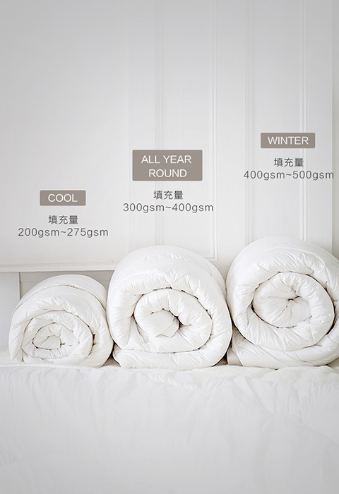 适合冬季盖的被子都在400到500 gsm,北方房间暖气足的亲们盖这个级别的被子基本可以满足冬季的需求了